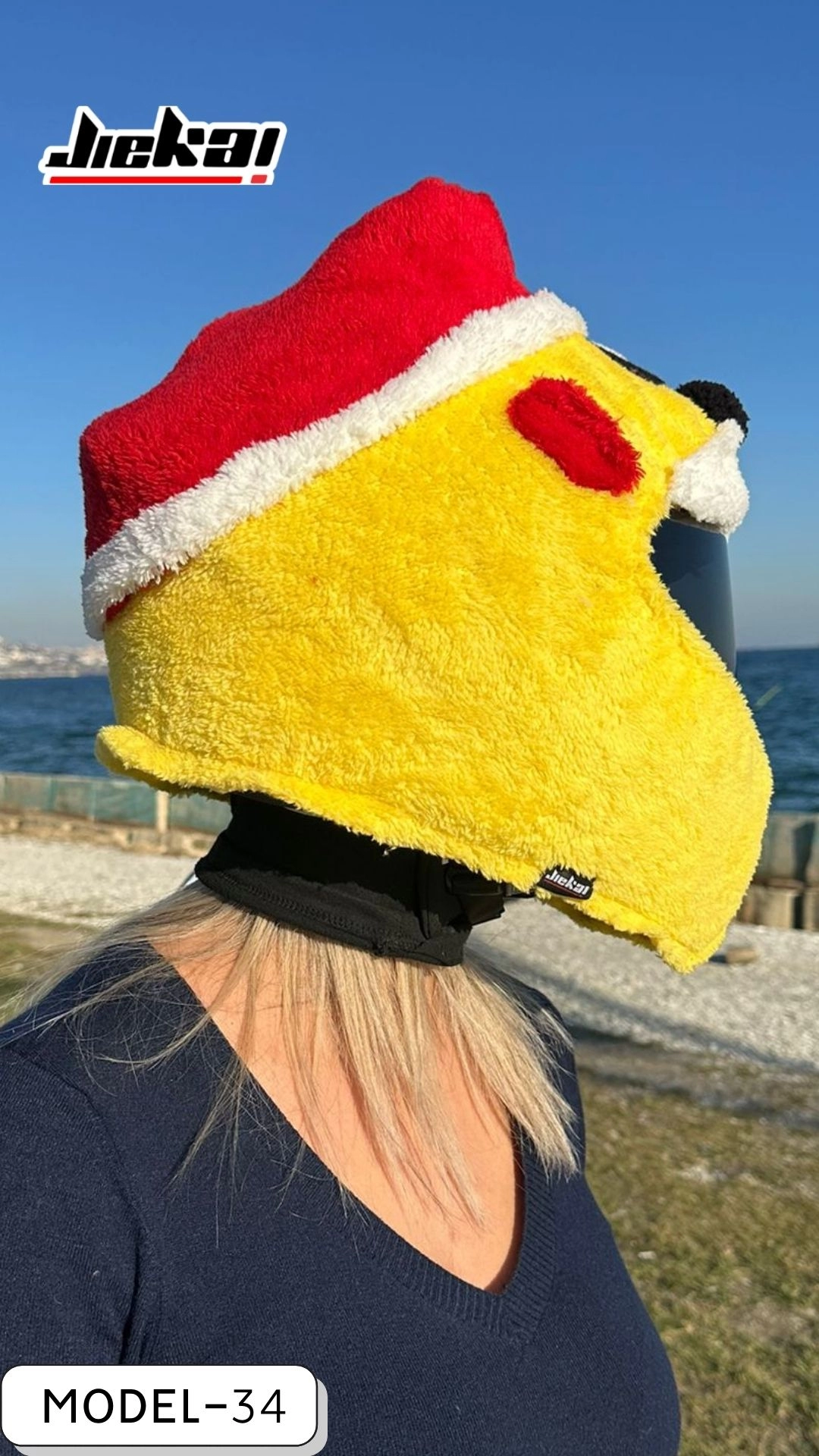 JİEKAİ koleksiyonuna yeni eklenen Pika Noel Kask Peluşu, eğlenceli tasarımı ve yılbaşı ruhunu yansıtan detaylarıyla motosiklet sürüşlerine neşe katıyor. Noel temasıyla özel olarak tasarlanan bu model, sevimli görünümüyle hem kendiniz hem de sevdikleriniz için dikkat çekici bir tercih sunar.