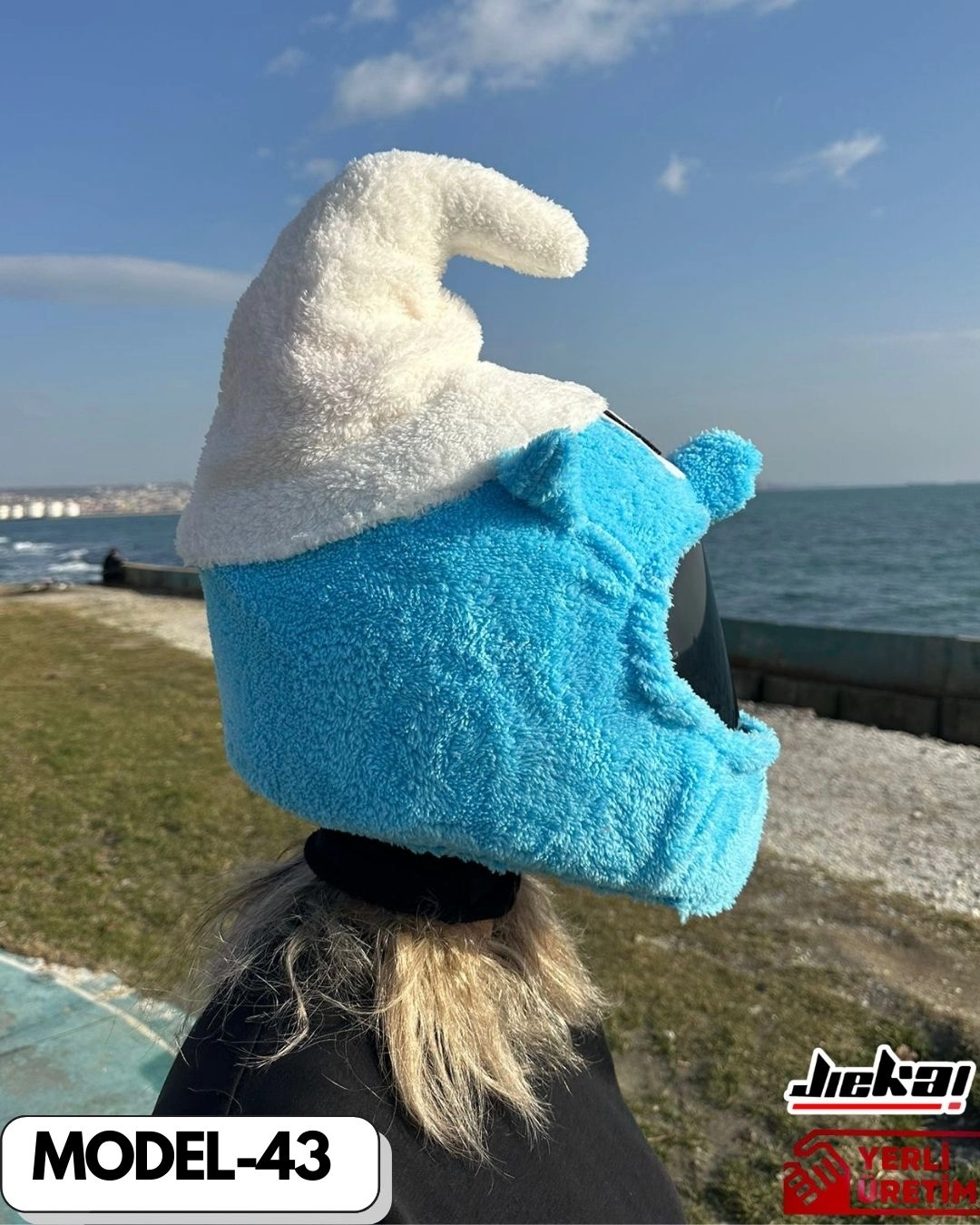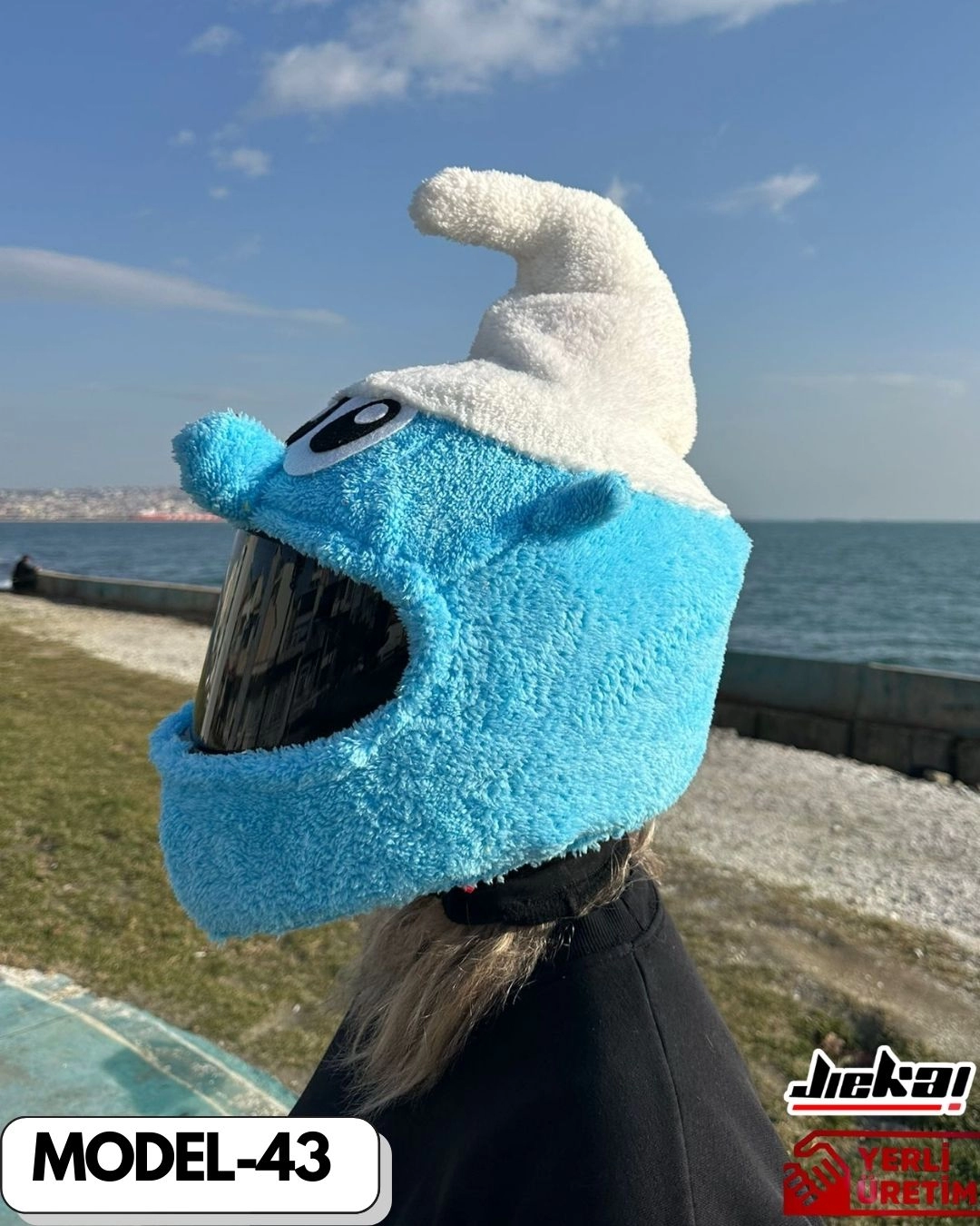 Motosikletine neşe, renk ve nostaljik bir hava katmak isteyenler için Şirinler Kask Peluşu şimdi JİEKAİ farkıyla sizlerle! Çocukluğumuzun efsane karakterlerinden ilham alan bu özel tasarım; sevimli görünümü, canlı mavi tonları ve eğlenceli ifadesiyle trafikte tüm dikkatleri üzerine çekiyor.